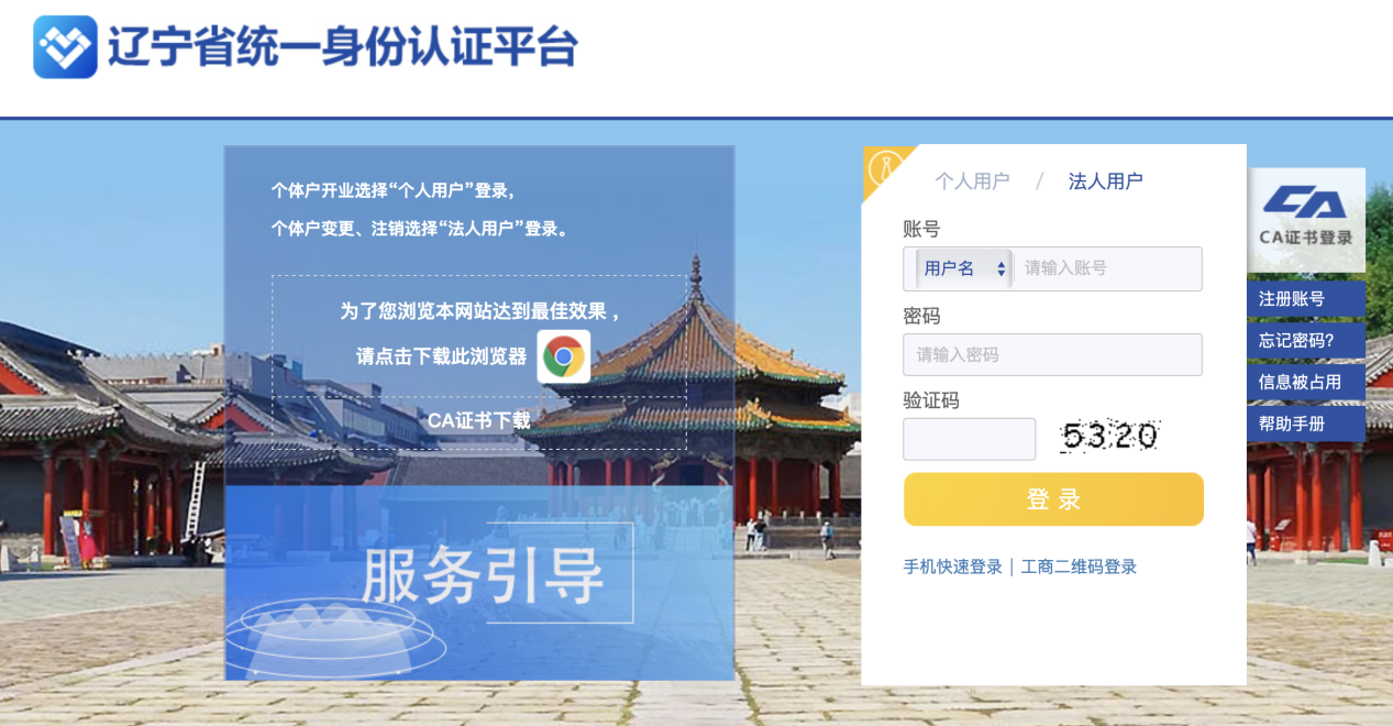 1.登录辽宁政务服务网(https://www.lnzwfw.gov.cn)登录账号(首次注册请用统一社会信用代码和法人相关信息进行注册)。