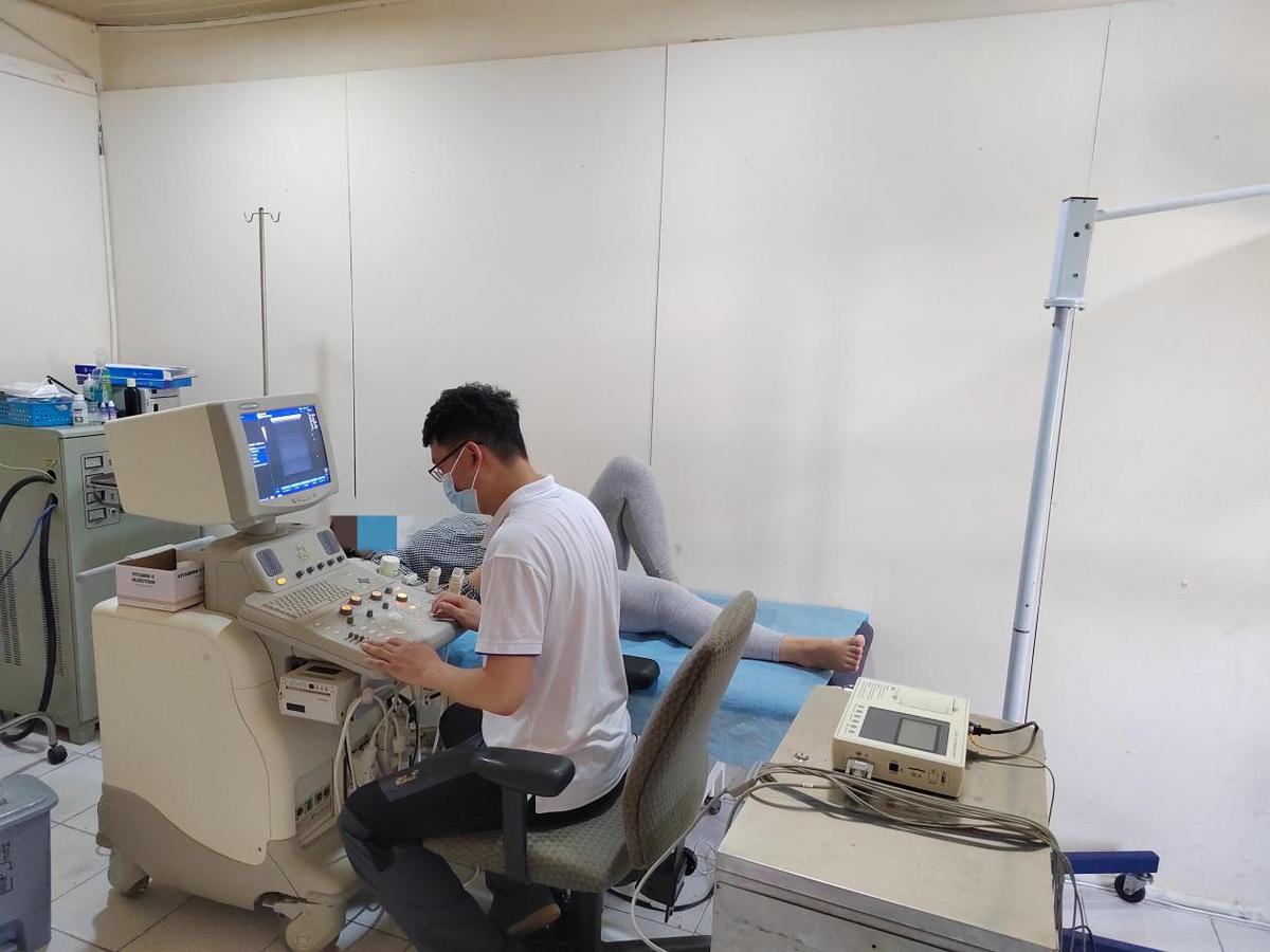 来自中国医科大学附属盛京医院的医疗队队长孙佳星接到求助电话后,立刻联系当地医院,会同同样来自中国医科大学附属盛京医院妇产科的李威教授来到当地华人医生的私立医院对袁女士的医疗诉求进行了详细的了解,袁女士代表中资企业在塞内加尔工作了三年多,塞内加尔当地医院都是法国医生,这让会说英语的她特别为难,完全看不懂各项检查资料,也不知道胎儿的生长发育情况,焦虑的她无数次在噩梦中惊醒,当她得知中国医疗队来到邻国冈比亚后,立刻想到了来找中国医生帮助她。非洲的路况不比国内,漫长的旅途让袁女士精疲力尽,当她看到来自祖国的医生时,开心的泪水夺眶而出。妇产科李威教授详细的询问了袁女士的病史,了解了袁女士在达喀尔法国医院的检查情况。随后,医疗队队长孙佳星教授为袁女士进行了胎儿超声检查,经过耐心细致的检查,产前超声检查显示胎儿的生长发育情况正常,胎儿大小与孕周相符合。袁女士紧张的情绪得到了平复,对中国医疗队耐心细心、无微不至的专业医疗服务表示极大的肯定,袁女士说感谢来自祖国的医疗队给了她来自祖国的的温暖,来自中国医科大学附属盛京医院的专家团队让她感受到了中国的强大,袁女士抵达冈比亚第二天即将再次历经八小时的旅途返回塞内加尔,临行前袁女士表示中孕期的胎儿畸形筛查会继续选择中国医疗队,她相信中国医疗队的专业精神。