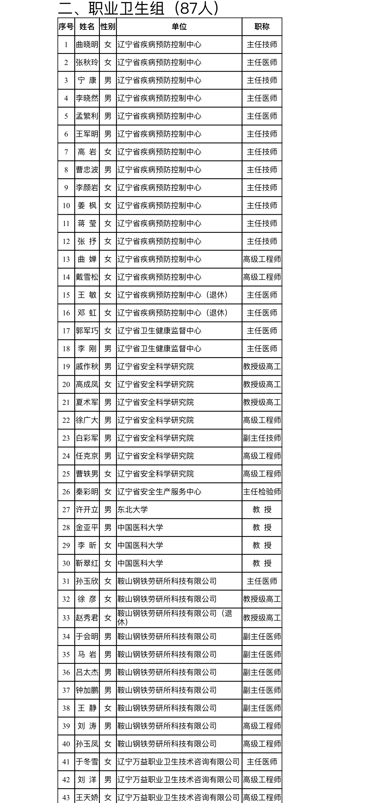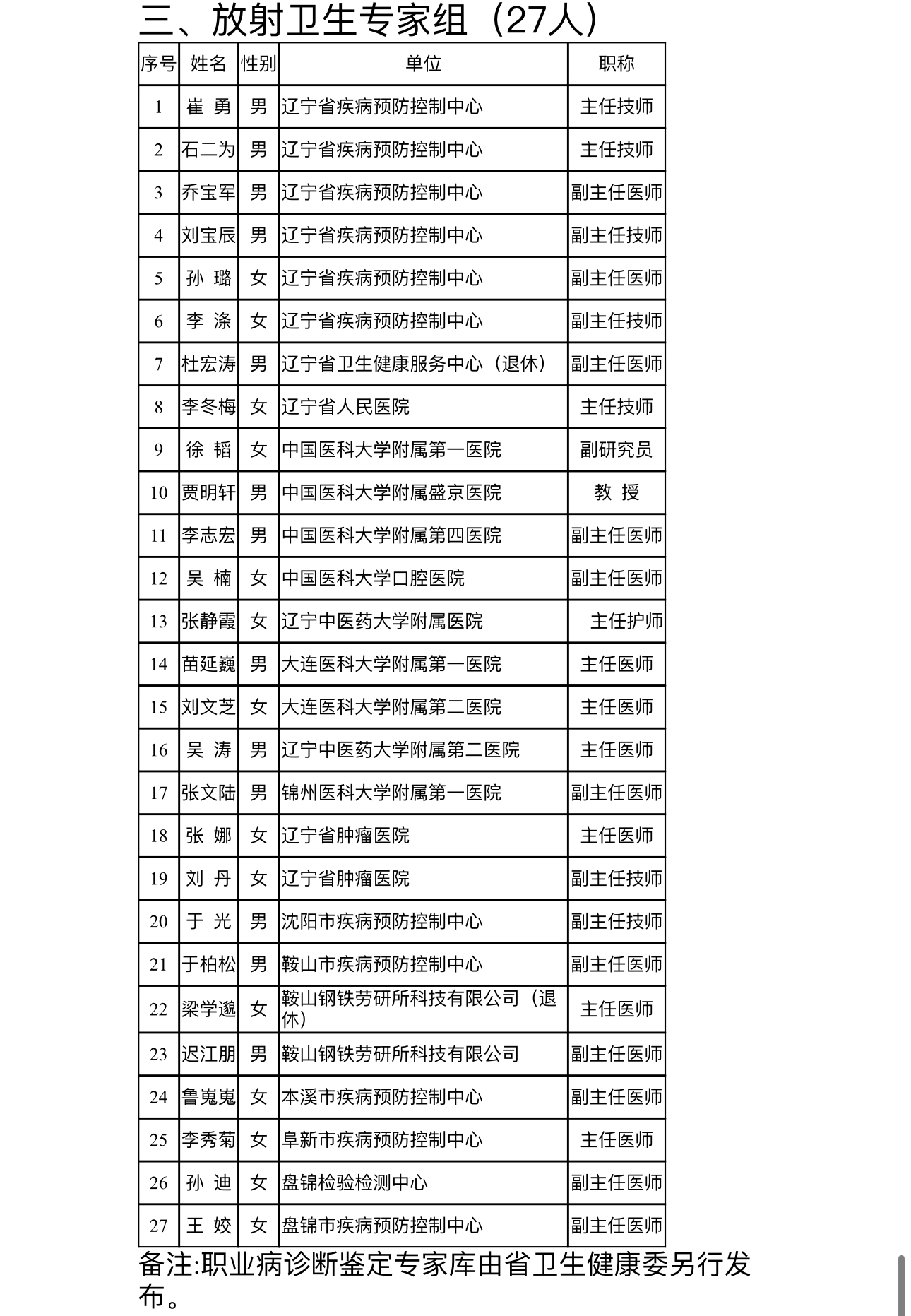 为规范我省职业健康专家遴选和管理,充分发挥专家在职业健康方面的技术支撑作用,保障专家有效开展工作,日前,澳门博彩在线印发《辽宁省职业健康专家库管理办法》(以下简称《办法》),并通过个人申报、单位推荐、专家审查、组织考核和社会公示等程序,遴选确定了我省职业健康专家库专家名单(第一批)。具体名单如下: