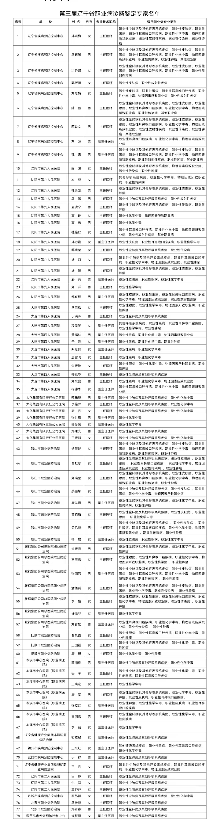 第三届辽宁省职业病诊断鉴定专家库名单公布