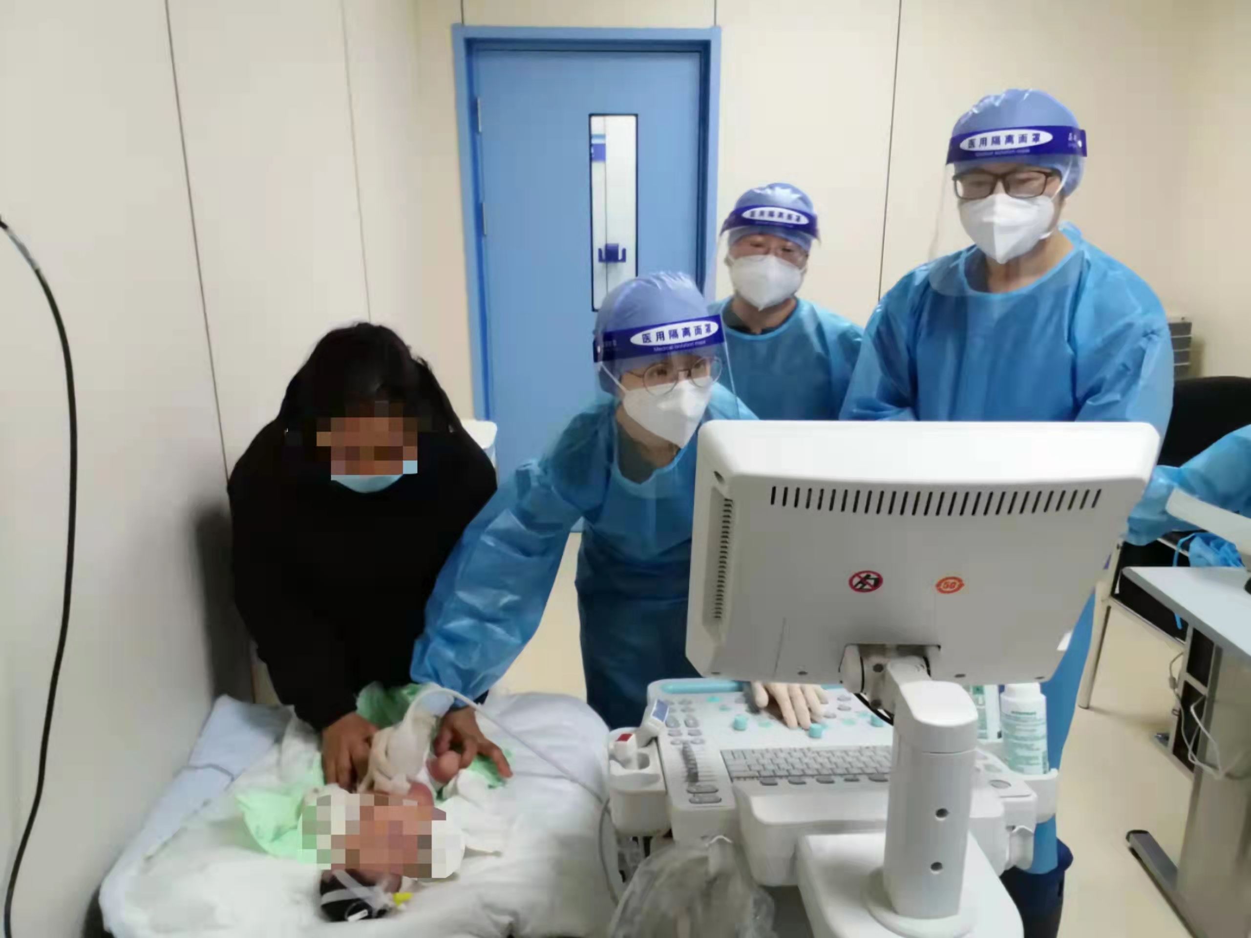 接到转诊需求后,盛京医院立即对患儿的转运接收、入院检查、诊断及治疗方案、术后管理等相关流程进行梳理。新生儿内科、新生儿外科、超声科精兵强将提前进驻发热门诊。