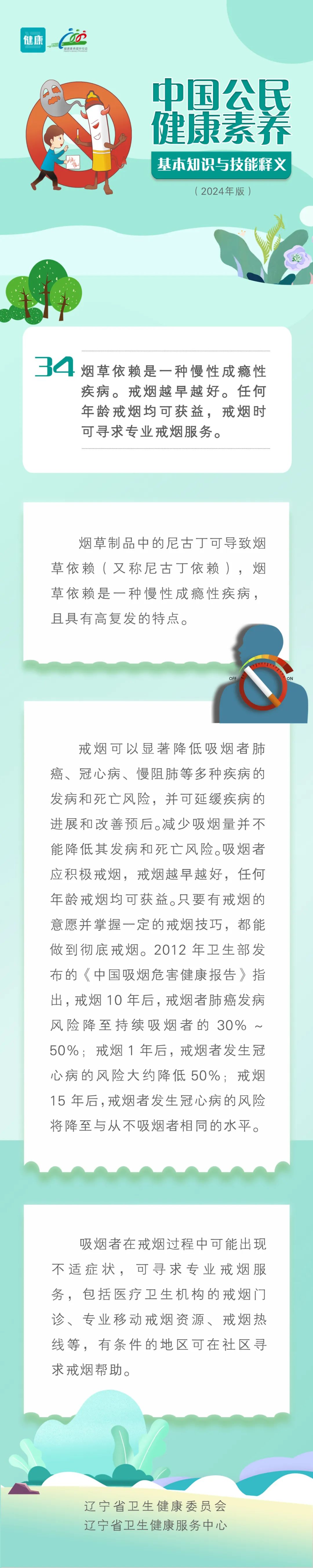 新版健康素养66条|戒烟越早越好,任何年龄戒烟均可获益
