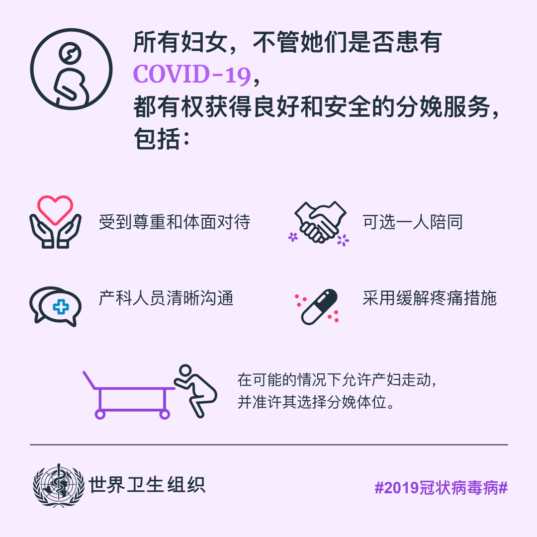 所有女性都有权获得安全、良好的分娩体验,无论她们是否已确诊感染2019冠状病毒病。