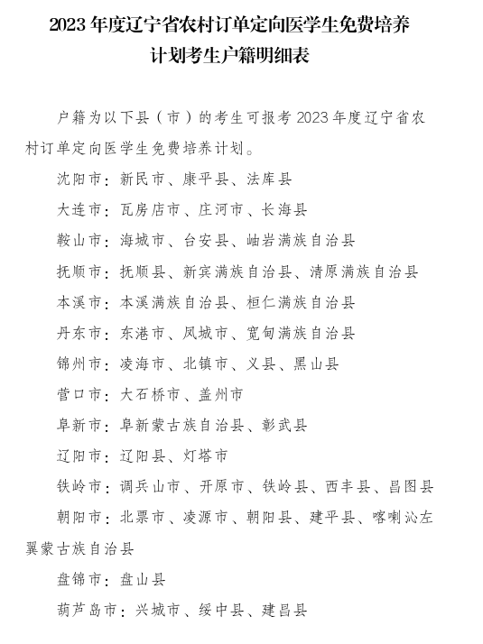 2023年度辽宁省农村订单定向医学生免费培养政策问答